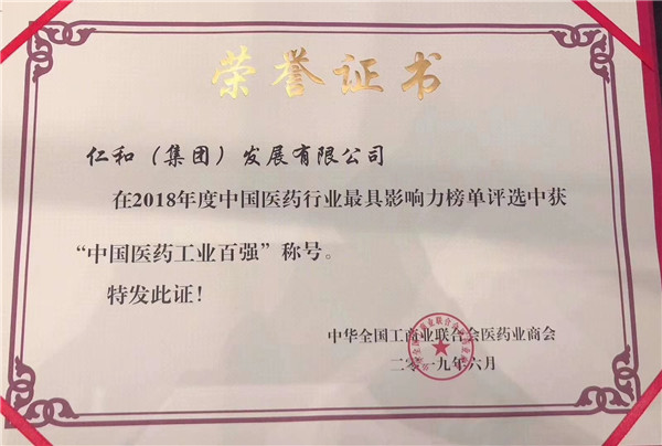 仁和集團榮膺2018年度中國醫藥工業百強 發布時間: 2023年04月23日 11:09:05 閱讀量: 7,586 下一篇:仁和集團榮獲國家藥監局藥品法制宣傳教育基地“先進單位”稱號上一篇:仁和藥業股份有限公司位列榜單中國中藥企業百強(第37位)