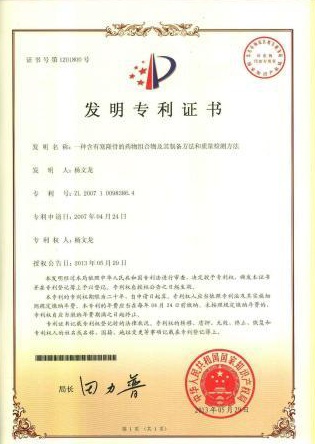 一種含有塞隆骨的藥物組合物及其制備方法和質量控制方法發明專利證書 發布時間: 2019年12月18日 11:47:32 閱讀量: 10,103 下一篇:一種桂龍咳喘寧片的分析方法發明專利證書上一篇:一種化積顆粒的分析方法發明專利證書