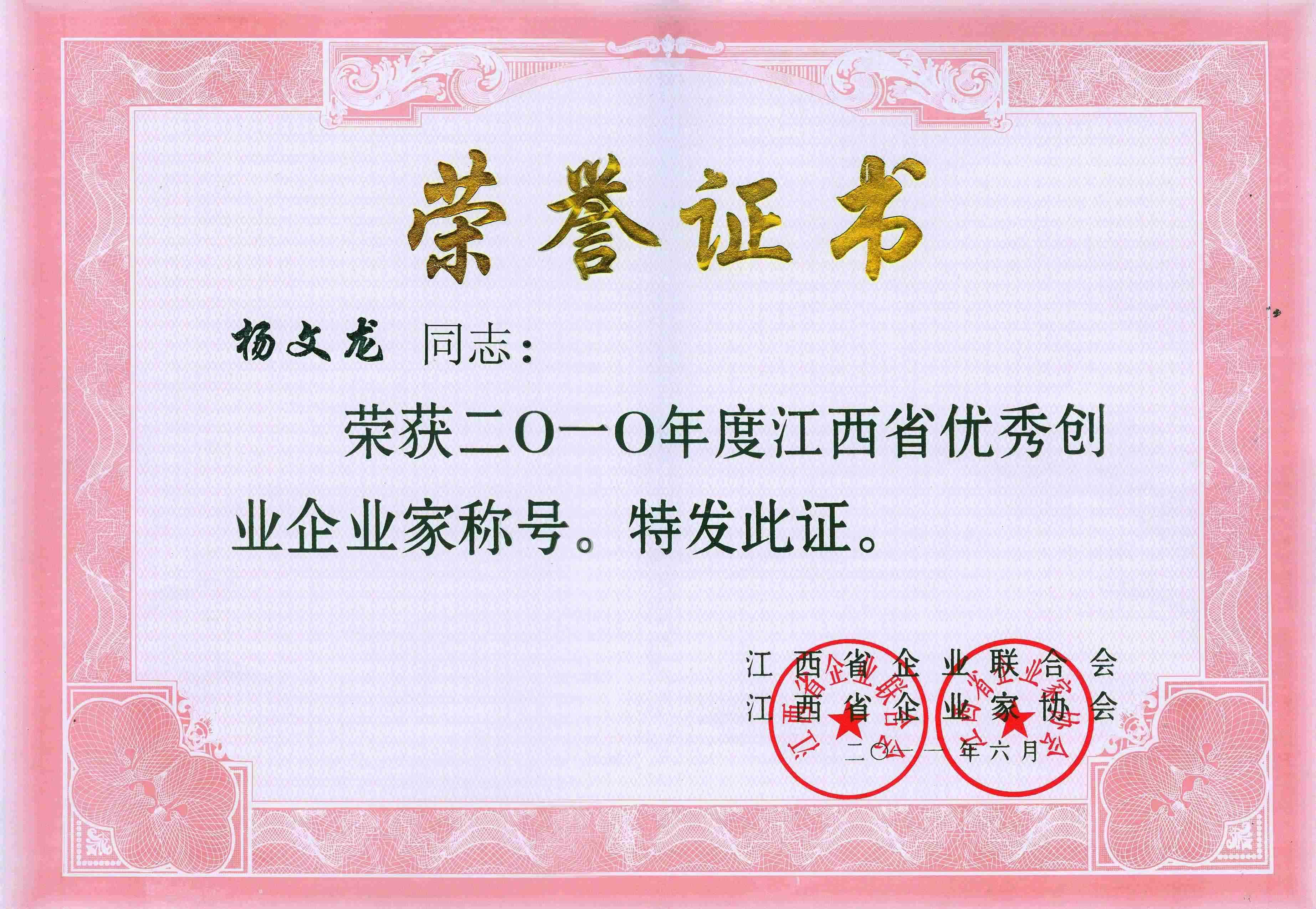 2010年度江西省優秀創業企業家